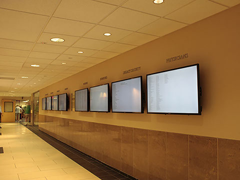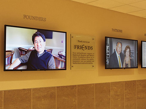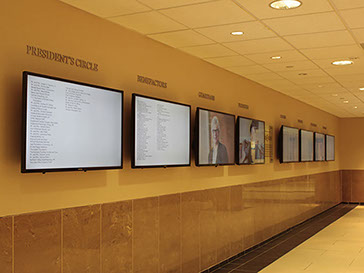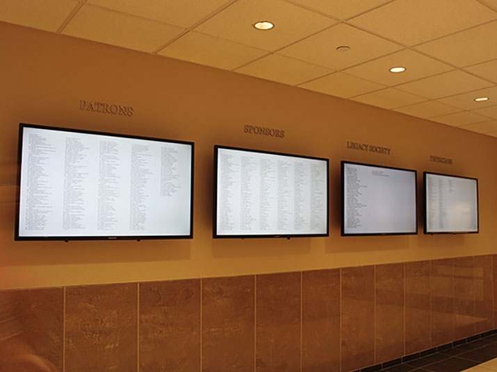 Solution: We moved them into the digital world with an 8 screen custom designed and custom programmed system. Each screen honors one of their 8 levels of giving, including their physician donors and their planned giving donors.