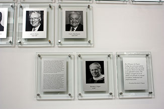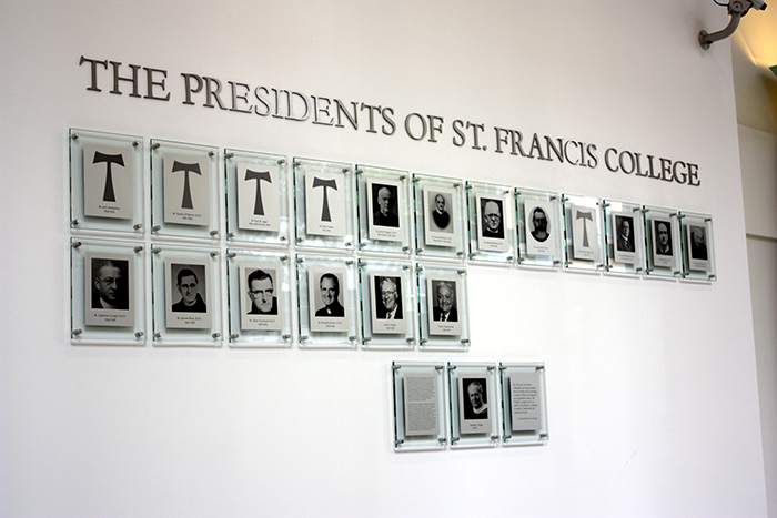 As part of our process we retouched all the historical photos that could be retouched to really beautiful quality status. The end product here is an homage to the Presidents of St. Francis and the history of St. Francis College.