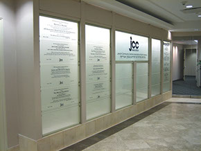 Solution: The donor panels were already designed and installed in their prior facility. We worked with their new designers and architects to re-house the panels in a striking setting. The choice was to build a new framing system and back light all the panels. The installation proved to be effective and startling. When you get out of the elevators to go to this client's offices you are immediately aware of the quality of service they represent.