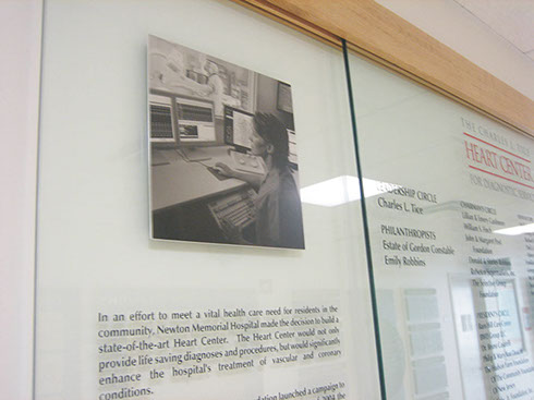 For the room naming opportunities we went back to Newton's standards again. We used the plaques designed from their first campaign and changed the logo. Instead of the tri-city logo these plaques had the Heart Center logo as their identifying mark. The look is effective in that whenever a plaque of a given size and format is seen it denotes donor support, no matter what the logo is. Making support easily identifiable to the public helps make the case of how well you are doing as an institution.