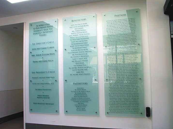 Project: Donor walls and donor plaques for a newly built wing.