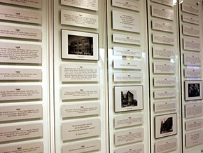 Solution: We identified this project as both honorial and historical. The dates for student recognition were 1935 to 2010 and then yearly from then on. As in much of our work photography plays a major role. Not only does the system honor students through the years but it shows the history and growth of St. Francis College over the years as well. It is a recognition tool and a branding tool. Reports confirm this installation stops passers-by and engages them in the presentation.