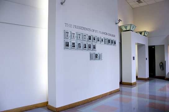 As part of our process we retouched all the historical photos that could be retouched to really beautiful quality status. The end product here is an homage to the Presidents of St. Francis and the history of St. Francis College.