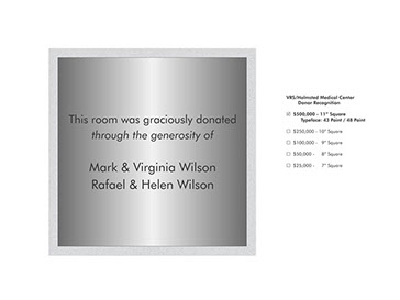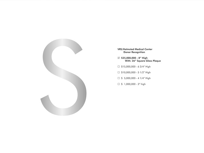 Solution: Most of our clients run capital campaigns. Within these campaigns they offer naming opportunities. Our experience is that most non-profits do the same but have no plan in place to show donors what they will get for their donation. When the time comes to put up the naming opportunities non-profits are faced with a blank process that ends up haphazard and donor driven — both are very bad for a brand sensitive solution.