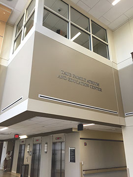 Solution: The Taub Family Education Center was a very important recognition opportunity because the Taub Family had been major donors over a long period of time and contributed to many additions and upgrades to our hospital client. This center was their most recent donation addition.