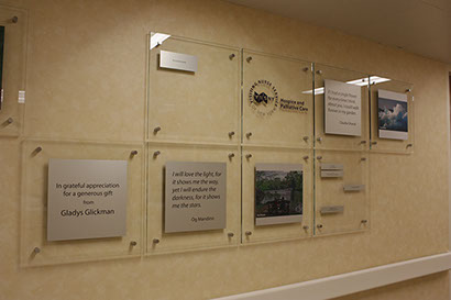 Project: Create a respectful and comforting donor recognition wall to honor contributors to this newly established hospice care center.